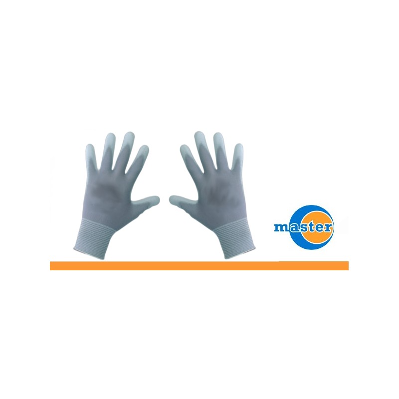 Guanti per intonacatori in poliuretano grigio (guanto in maglia 100% nylon senza cuciture) disponibile nelle taglie 8/9/10