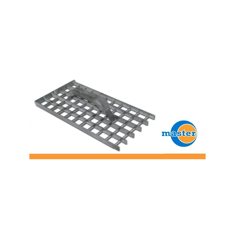 Rasatore a griglia in metallo per gesso con manico in plastica.