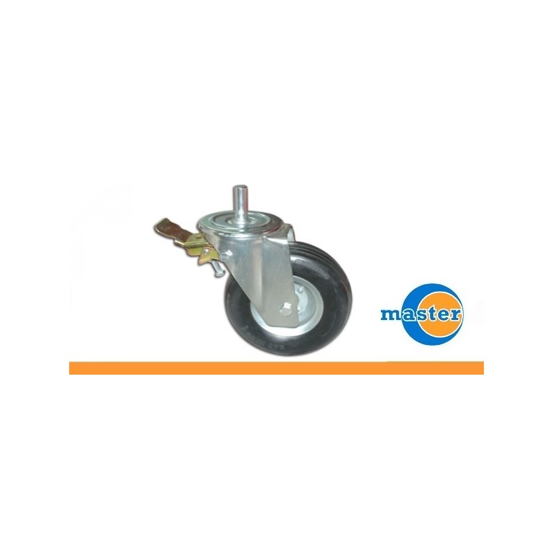 Ruota in gomma, con supporto girevole e freno posteriore per uso industriale (disponibile in vari diametri e misure del perno)
